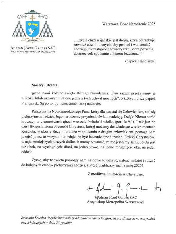 Odkryjmy zatem w sobie i nabierzmy na nowo tę nadzieję, o której w swoim przesłaniu z dnia 25 grudnia 2025 mówił X. Arcybiskup, tym bardziej że w odniesieniu do prezydentury Rafała Trzaskowskiego w Warszawie nic innego nam już nie pozostaje. Nadzieja bowiem umiera jako ostatnia.